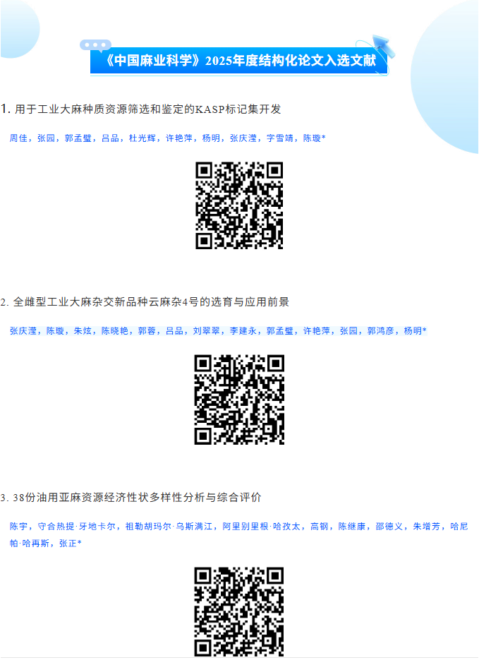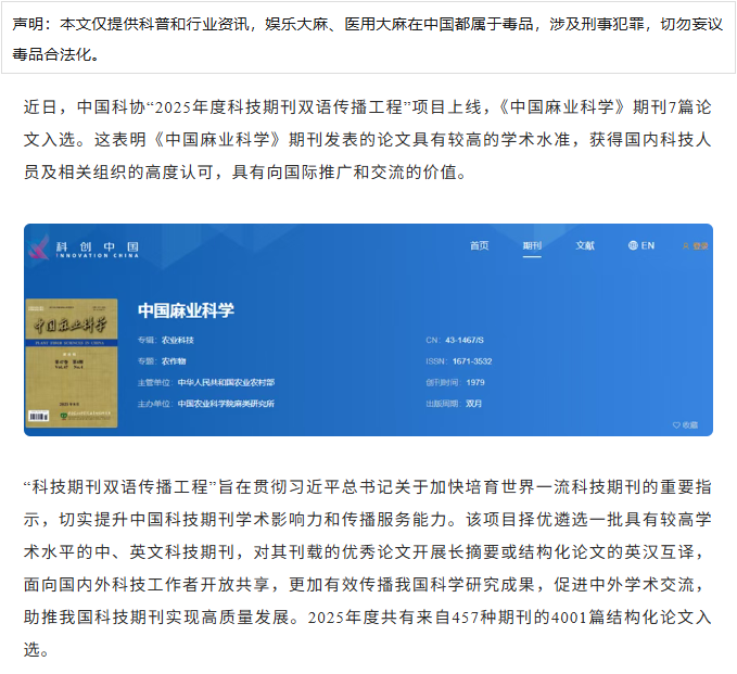 喜报 |《中国麻业科学》7篇文章入选中国科协“2025年度科技期刊双语传播工程”项目