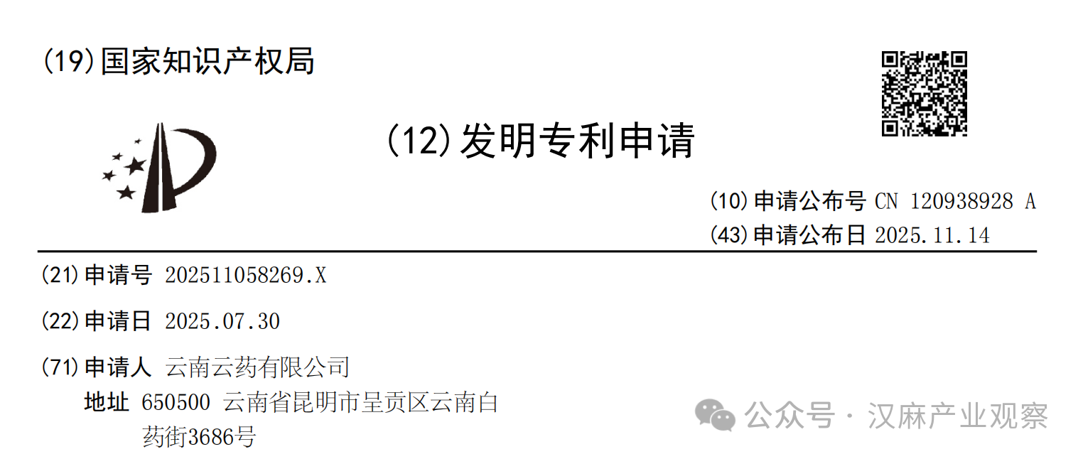 3、长线布局,等待时机:工业大麻(汉麻)在国内的合法应用始终在谨慎的探索中前行,政策环境是关键变量。云南白药体系此时的专利亮相,可能是在技术储备和产品层面上做好准备,静待市场与政策之门的进一步开启。它展示的是一种“不争一时之先,但求长远之实”的战略耐心。